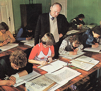 Nii alustas 1962. aastal tööd plakatkirja ring kunstnik Valentin Vare juhendamisel, mis kolm aastat hiljem jätkas kirjakunstnik Villu Tootsi käe all juba kirjakunsti koolina. 1983. aastast jätkas tema tööd kirjagraafik Heino Kivihall.
